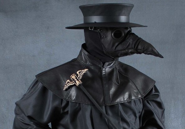 A ideia de contágio interpessoal foi logo compreendida. Basta notar que, já no final do ano de 1346, forças mongóis invasoras foram dizimadas pela peste durante o cerco de Caffa (atual Teodósia, na Criméia) e catapultaram alguns de seus mortos para dentro da cidade ocupada pelos genoveses. Somente a partir do início do século XVII que médicos começaram a usar proteção contra a transmissão da doença. O traje bastante macabro consistia em uma máscara de pássaro com óculos e um longo vestido de couro ou de lona encerada que ia do pescoço ao tornozelo.