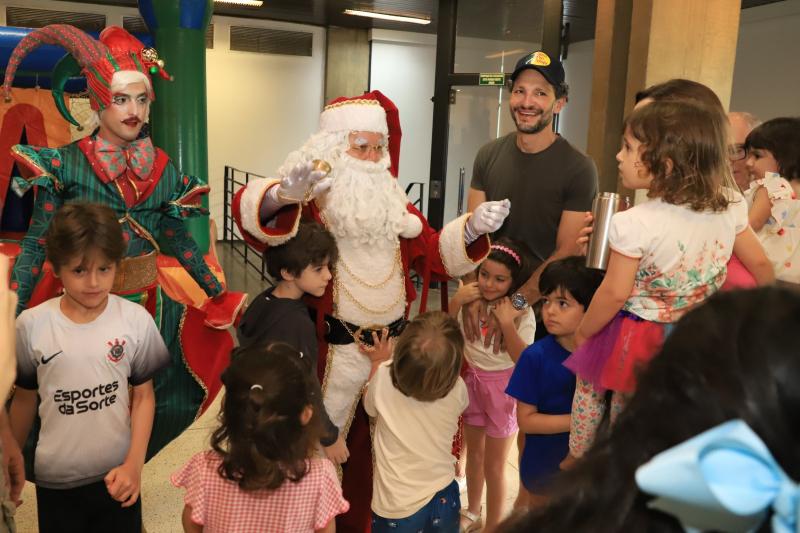 Como já é tradição na Sociedade de Medicina e Cirurgia, o espírito do Natal chega mais cedo quando associados e seus filhos recebem Papai Noel, em momento sempre de emoção não apenas para as crianças, mas para seus pais também. Foi o que viveram na manhã de domingo, 14 de dezembro, em evento realizado pela Diretoria da APM Rio Preto em que teve também espetáculo da companhia de dança Ligia Aydar, atividades com o Grupo Travesso e brinquedos infláveis, montados em pleno anfiteatro. Nem a chuva impediu o espírito de Natal.